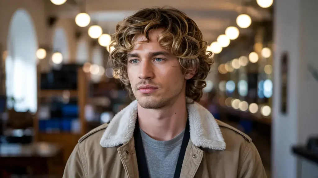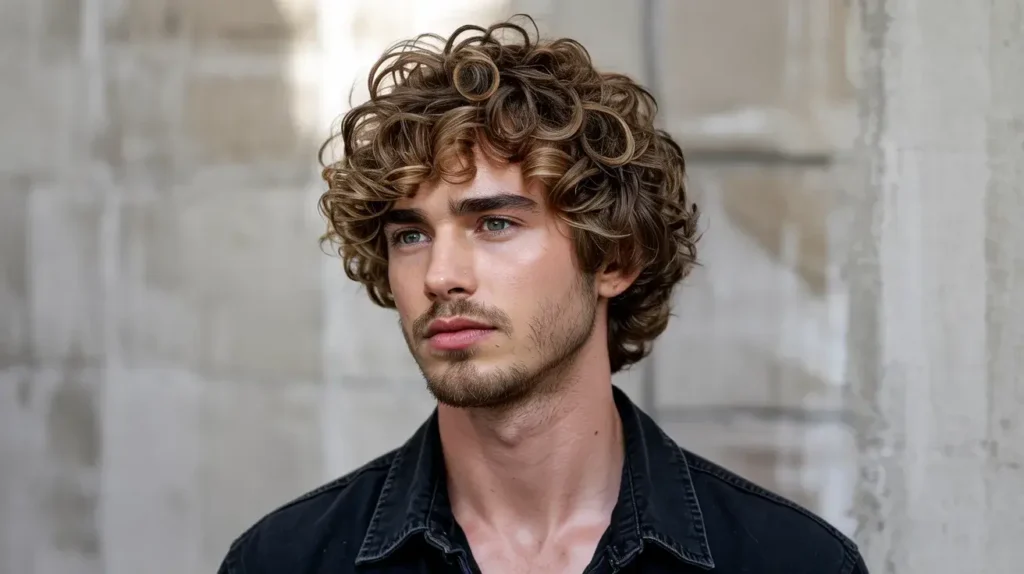 The Soft Layered Curly Mullet is for the guy who wants a more “pretty boy” aesthetic. It’s less about harsh fades and more about seamless blending. The layers are cut so that the hair flows from the top to the back without any obvious “steps.”