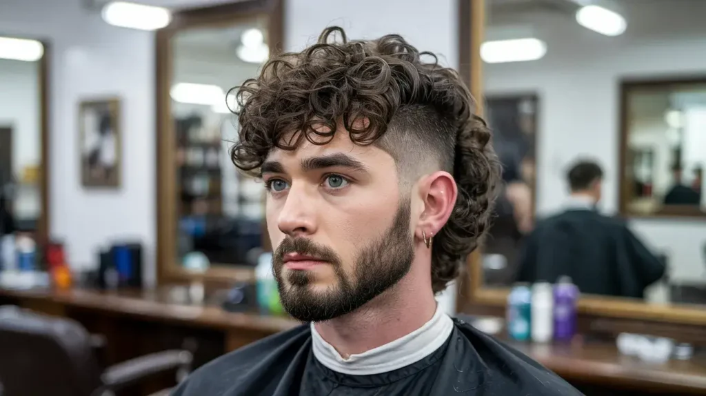 The Short Sides Curly Mullet differs from a fade because the hair is usually one consistent short length on the sides rather than tapering down to the skin. Think of it as a scissor-cut side that stays tight to the head.