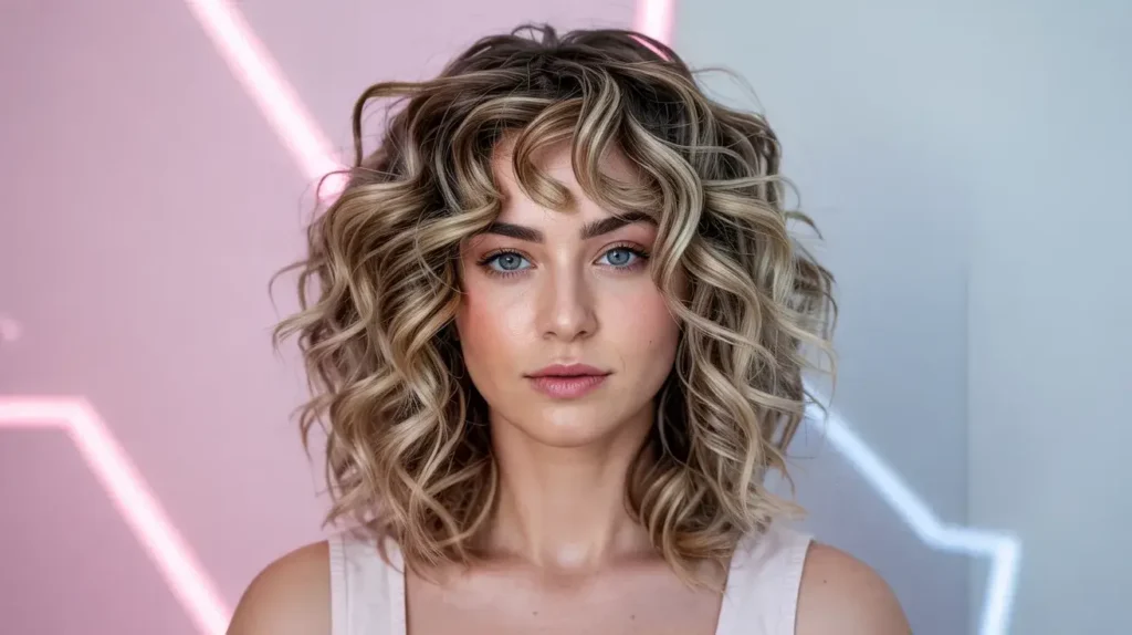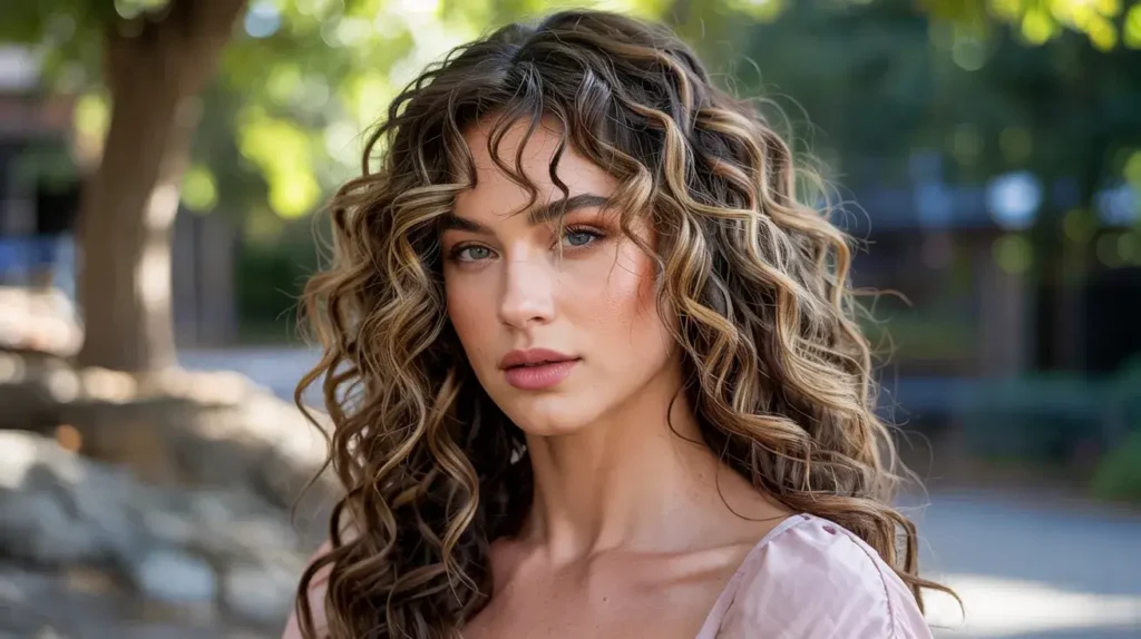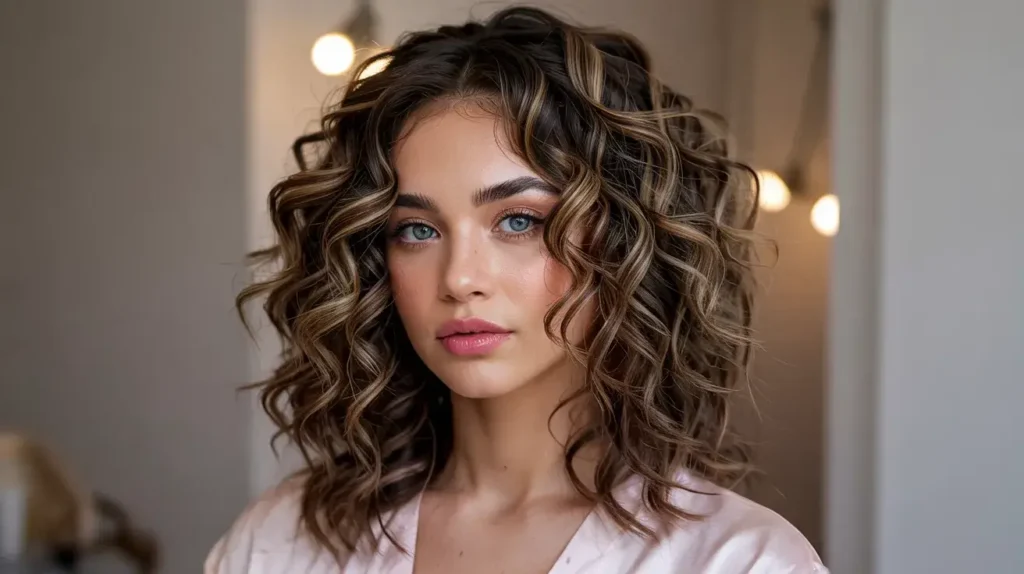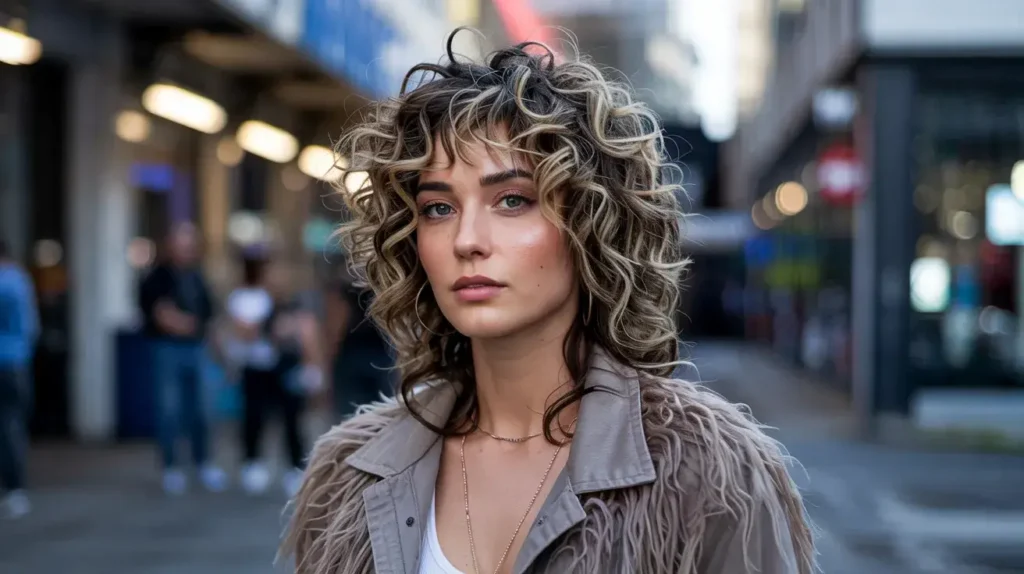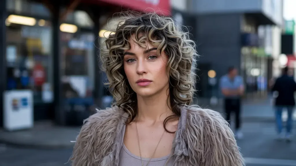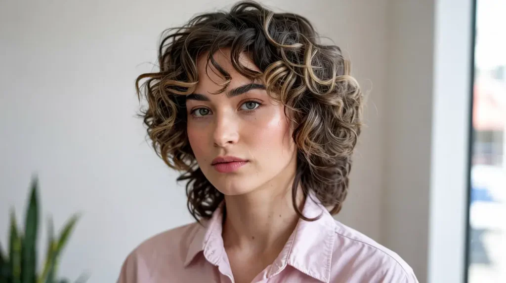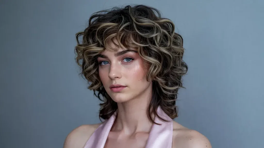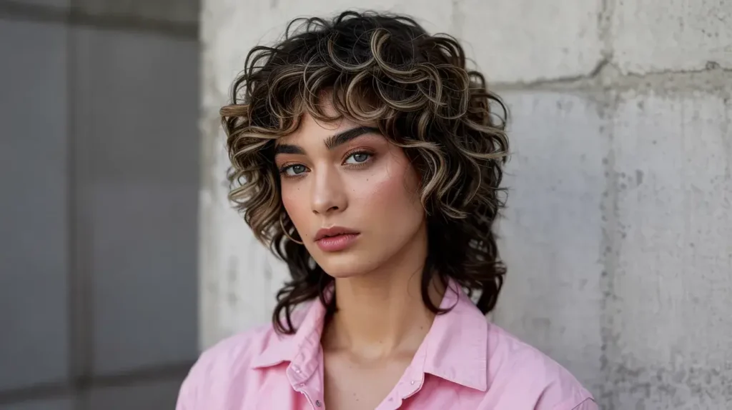 Finally, we have the glam curly mullet with highlights and dimension. A mullet can sometimes look like a “flat” block of color, especially if your hair is very dark or a single tone. By adding balayage, babylights, or strategic “peek-a-boo” highlights, you “carve out” the shape of the curls.