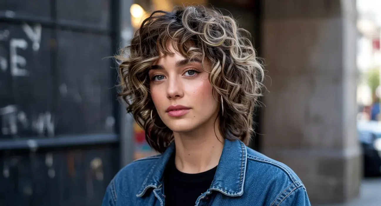 Ready to get a little edgy? Okay, maybe a lot edgy? The curly mullet with micro bangs is a bold choice that pays off in spades if you have the confidence to rock it. Micro bangs (or baby bangs) sit high above the eyebrows. When paired with the wild volume of a curly mullet, it creates a striking, structural contrast.