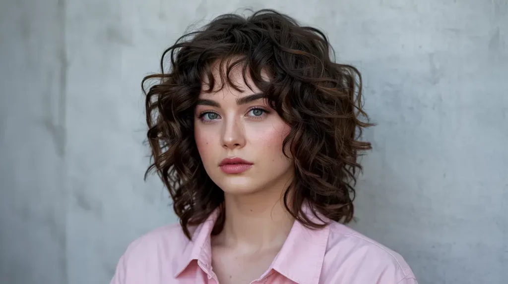 If you want people to think you just rolled out of bed looking like a million bucks, this is the one for you. The shaggy curly mullet with choppy layers relies on internal thinning and varied lengths to create movement. I find that this style works best when you embrace the frizz a little bit. Seriously, put down the anti-frizz serum for a second and let the texture breathe.