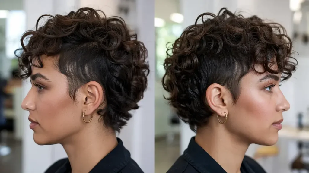 Ever wondered what happens when a classic, sophisticated bob meets a punk-rock mullet? You get the short curly mullet bob cut. This is honestly one of my favorite “hybrid” styles because it keeps the rounded, flattering shape of a bob around the face but leaves a little extra party length at the nape of the neck. It’s basically the “shmullet” and it’s taking over my Instagram feed.