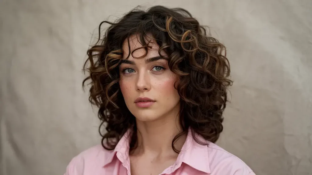 The choppy layers prevent the curls from clumping into one giant, heavy triangle shape. Instead, you get individualized ringlets that bounce independently. Have you ever noticed how some haircuts look like a solid, immovable helmet? This is the exact opposite of that. It’s airy, light, and full of “I don’t care, but I definitely do care” energy.