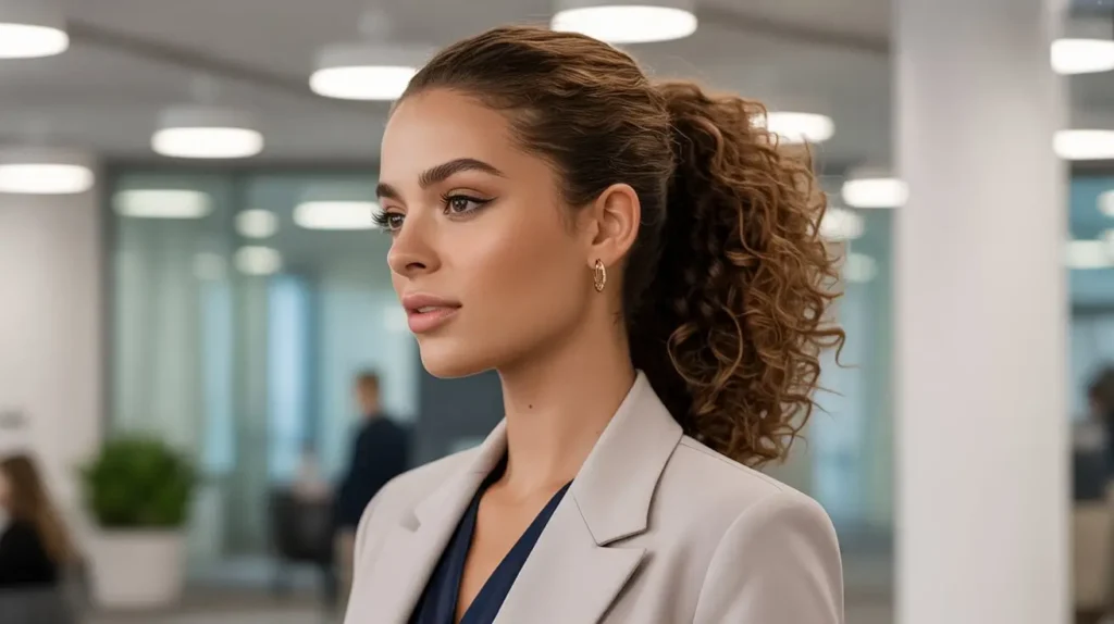5. Sleek Curly Ponytail for Work or School