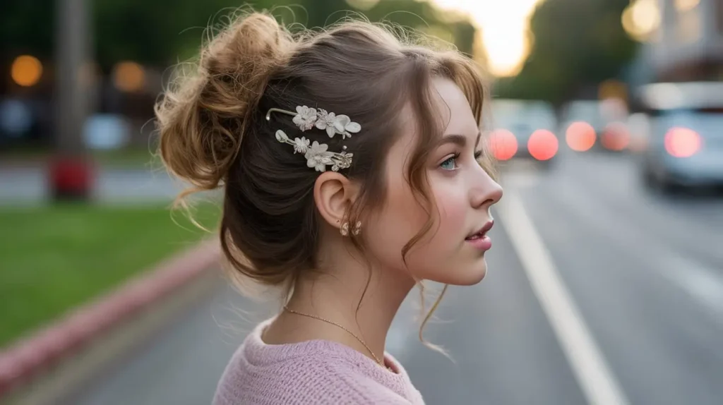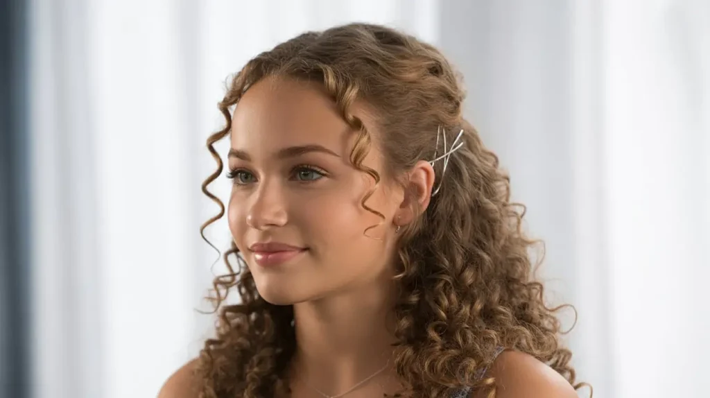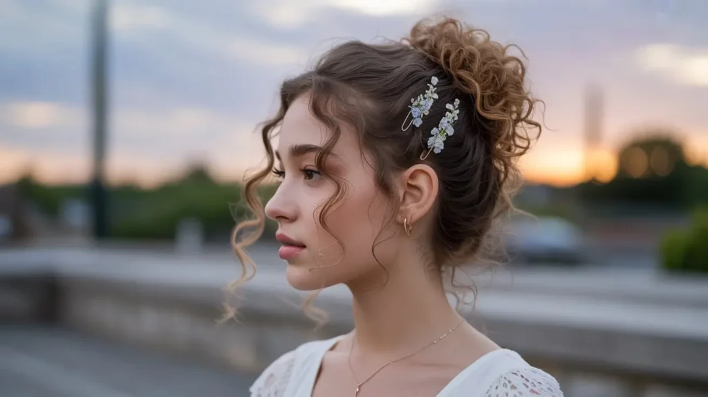 Let’s talk about the “bling.” Curly hair can sometimes “swallow” small accessories, so you need to go bold. Pearl pins, oversized rhinestone clips, and gold cuffs look incredible nestled in a bed of curls.