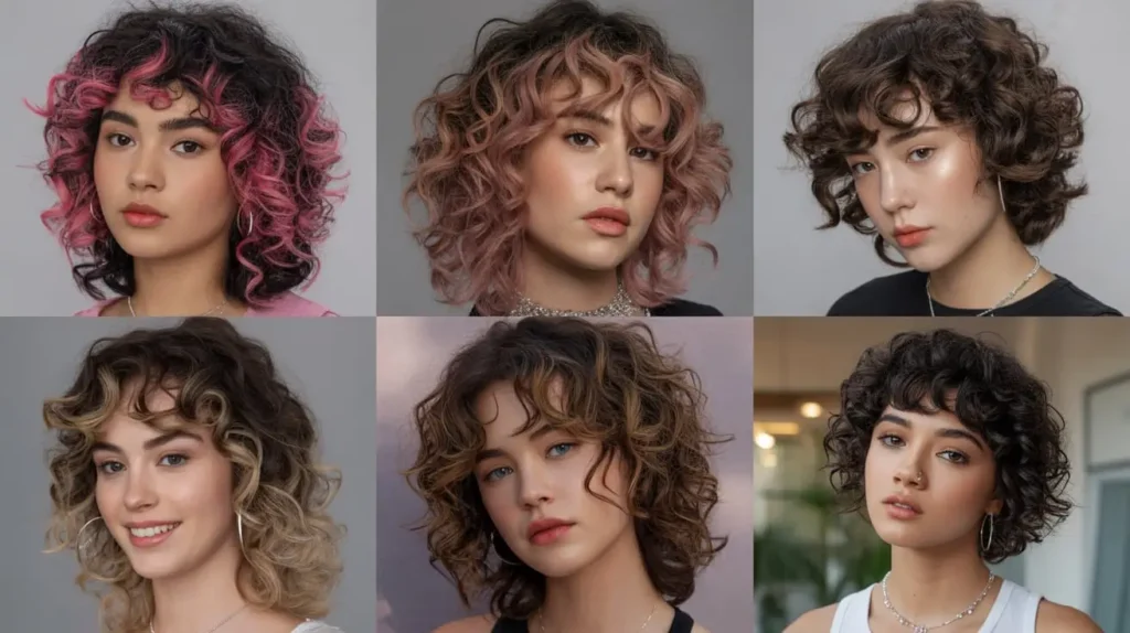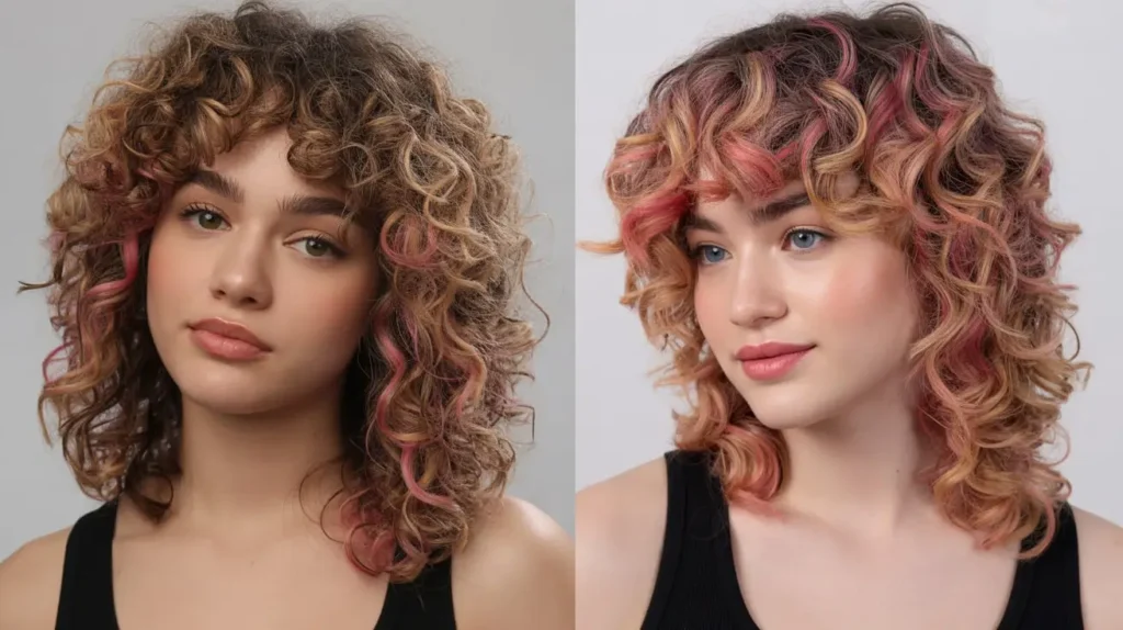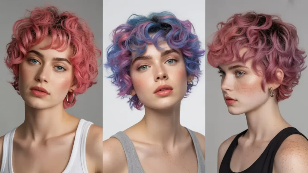 - The “E-Girl” Curly Bob: Add two bright, face-framing streaks of color to a short, curly cut.