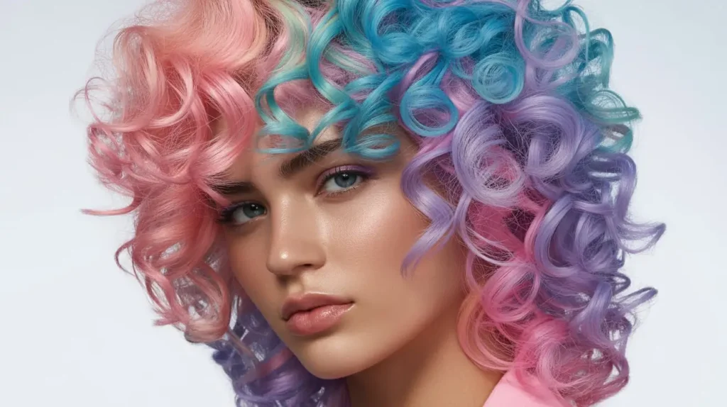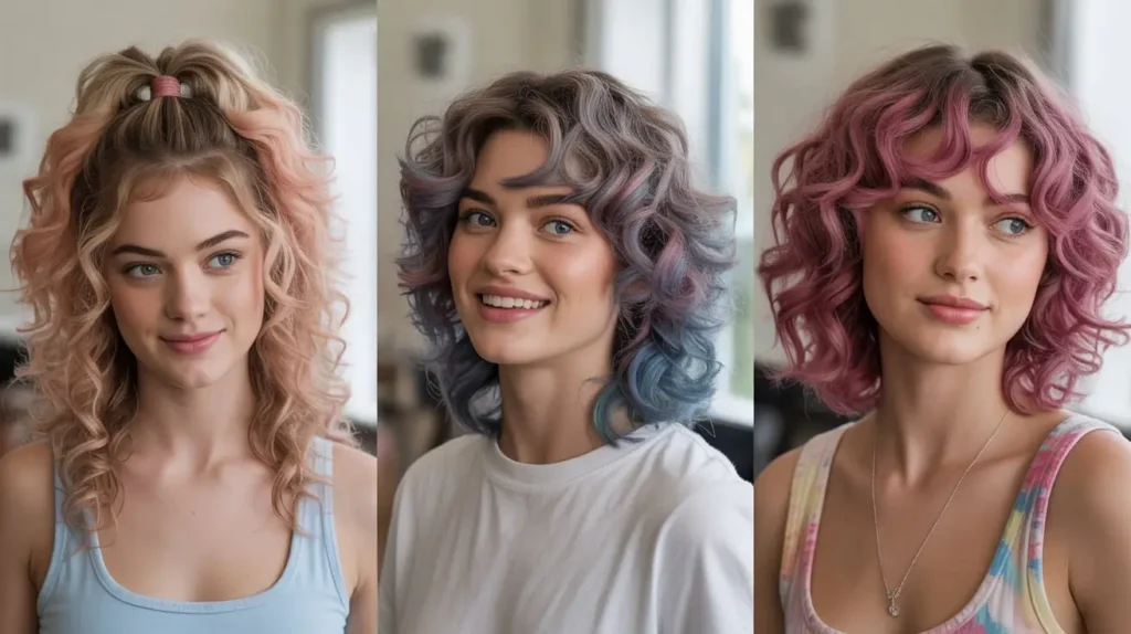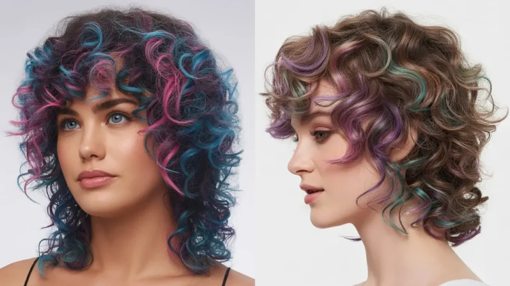 Consider Electric Blue Tips or Neon Green and Black. These classic combos look incredible when the colors spiral through a dark base. Another fan favorite is the Sunset Gradient, where you blend orange, pink, and purple throughout your curls for a vibrant, multi-tonal look.