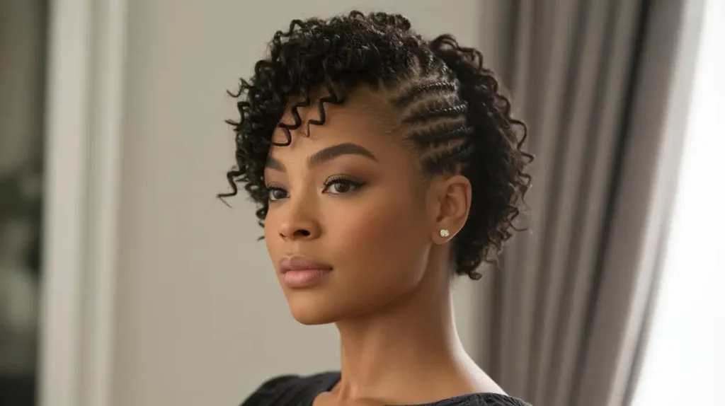 Sometimes you need a style that protects your hair for days. This updo incorporates flat twists, which look intricate and keep your roots neat. It’s a great option if you have tighter coils (type 4 hair) and want longevity out of your style.