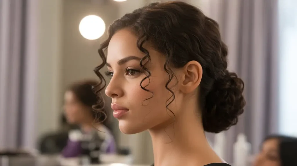 You can never go wrong with a classic. The low curly bun acts as the “little black dress” of hairstyles. It fits every occasion, from a high-stakes board meeting to a first date where you want to look effortless yet put-together.