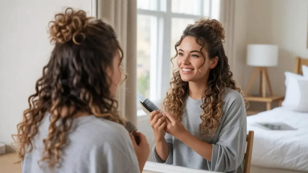 - Half-Up, Half-Down Top Knot: Section off the top half and twist it into a messy bun. Leave the back flowing wild. This is my go-to for brunch.