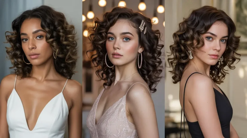 - Side-Swept Hollywood Curls: Pin one side behind your ear or braid it flat. Let the rest of the hair cascade over the opposite shoulder.