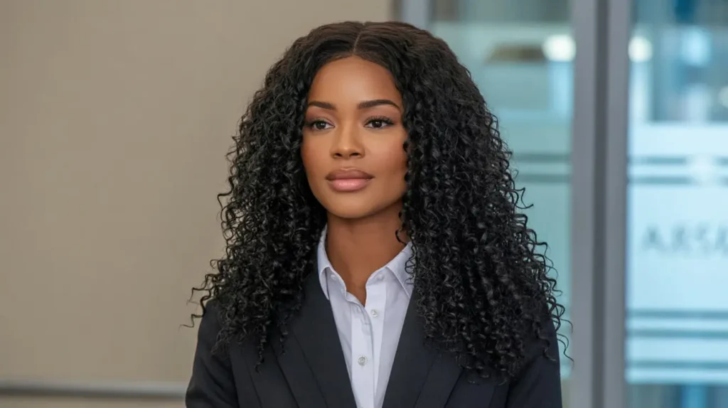 Headband wigs shine here again. They look like you pulled your natural hair back. Choose a neutral-colored headband (black, navy, beige) to keep it professional.