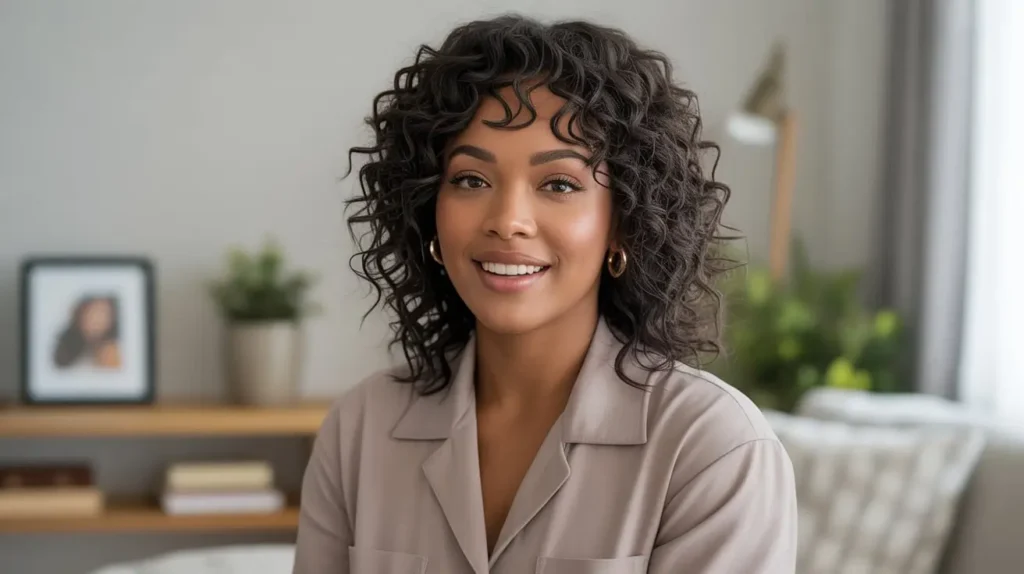 Another massive tip: Get a wig with bangs. A curly wig with fringe is the ultimate cheat code. The bangs cover the hairline completely. You don’t need to blend any lace. You just put it on and go. It frames the face adorably and hides the fact that you have zero clue how to melt lace. It’s fail-proof styling.