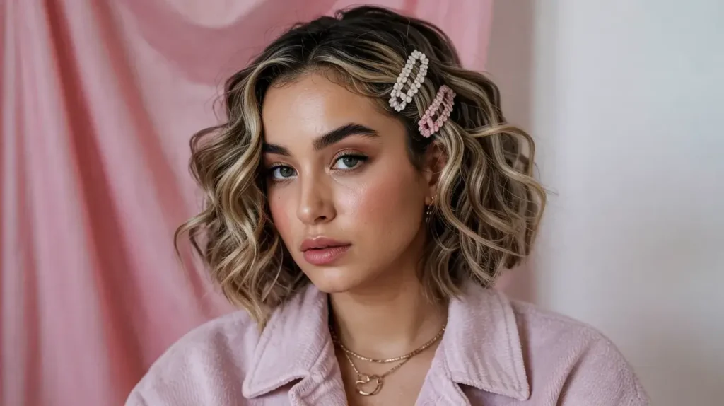 When your curls aren’t cooperating, distract everyone with something shiny. Accessories are the “cheat code” for short curly hair. A wide headband can hide frizzy roots, while a delicate pearl clip can make a messy pixie look like a bridal style. I keep a stash of claw clips and silk scarves in my car for “hair emergencies.”