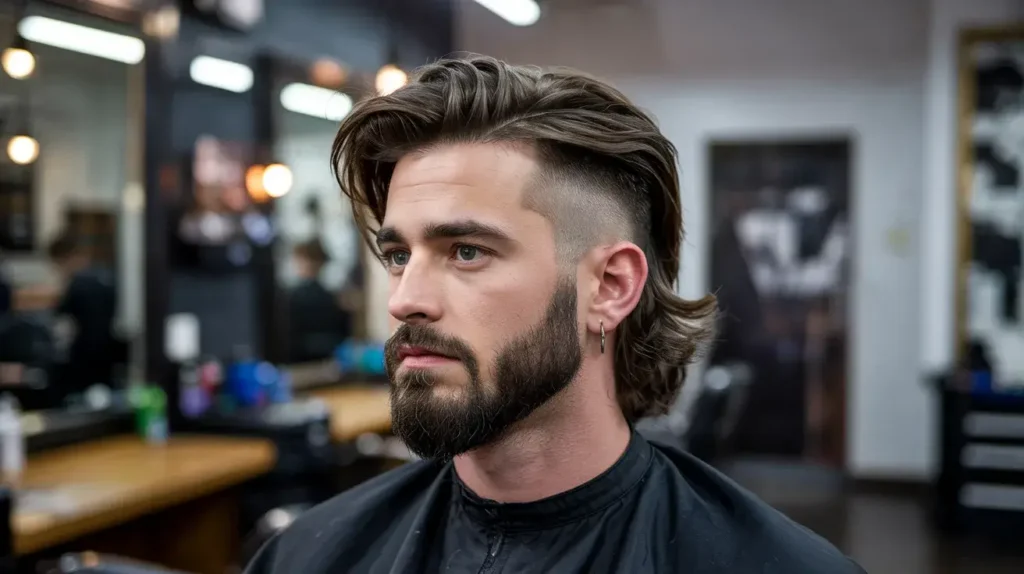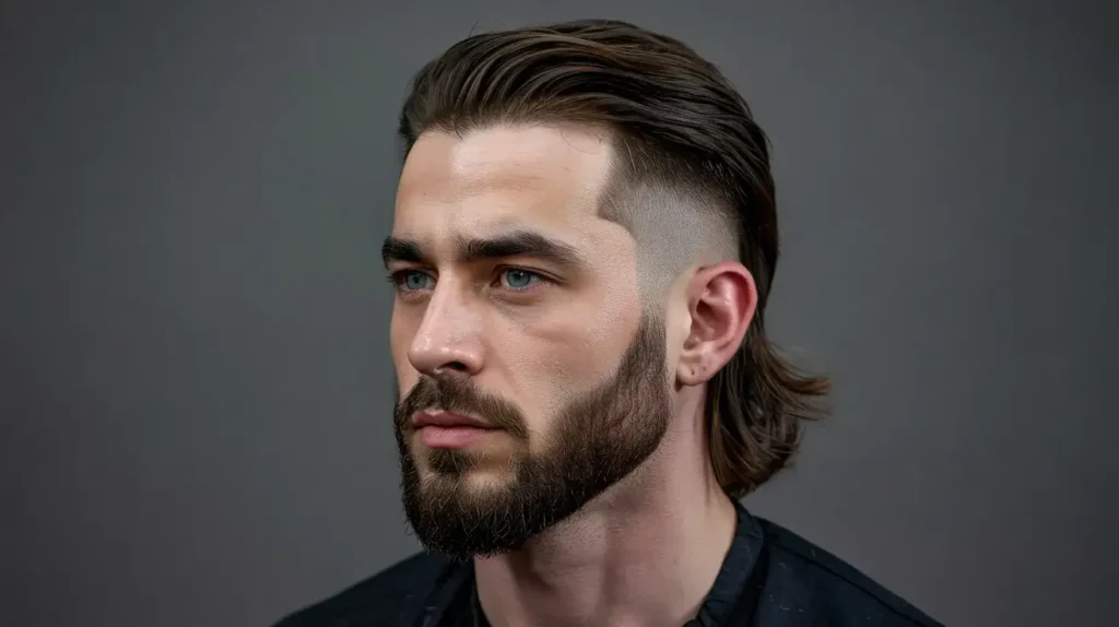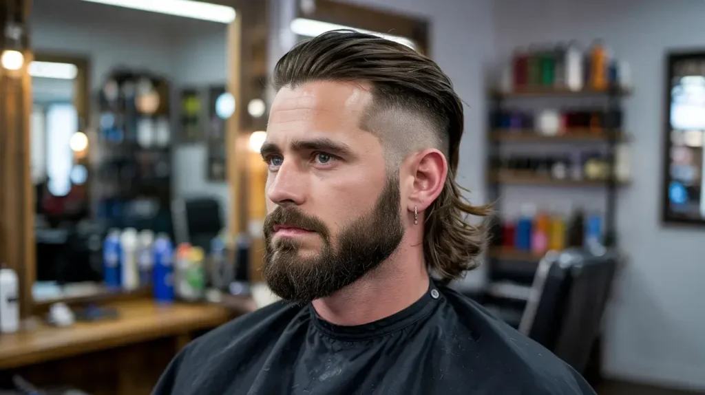 The Modern Low Fade Mullet acts as the perfect “entry-level” option for the mullet-curious man. I started here because I wasn’t ready to go full-blown rockstar on day one. Your barber drops the fade low around the ears, which creates a clean, groomed transition from the skin to the hair. This prevents that awkward “mushroom” look that plagues so many bad haircuts.