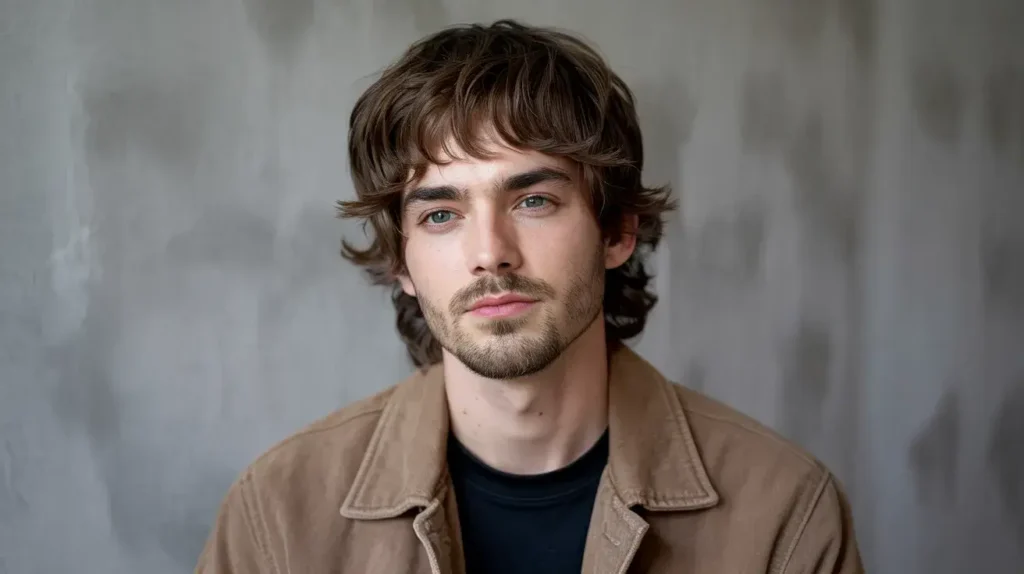 I think this is the most approachable version for guys who are worried about looking “too much.” It frames the eyes beautifully and gives off a very approachable, friendly vibe. It’s the mullet you wear when you want to look like the protagonist in a classic coming-of-age movie. It feels nostalgic and modern at the same time.