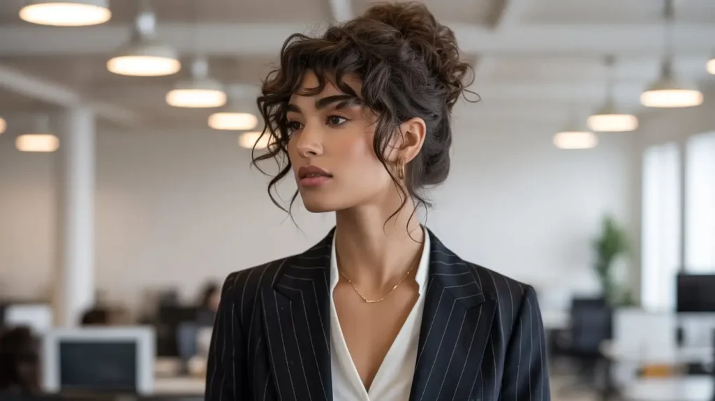 5. Chic Messy Curly Buns for Work and Play