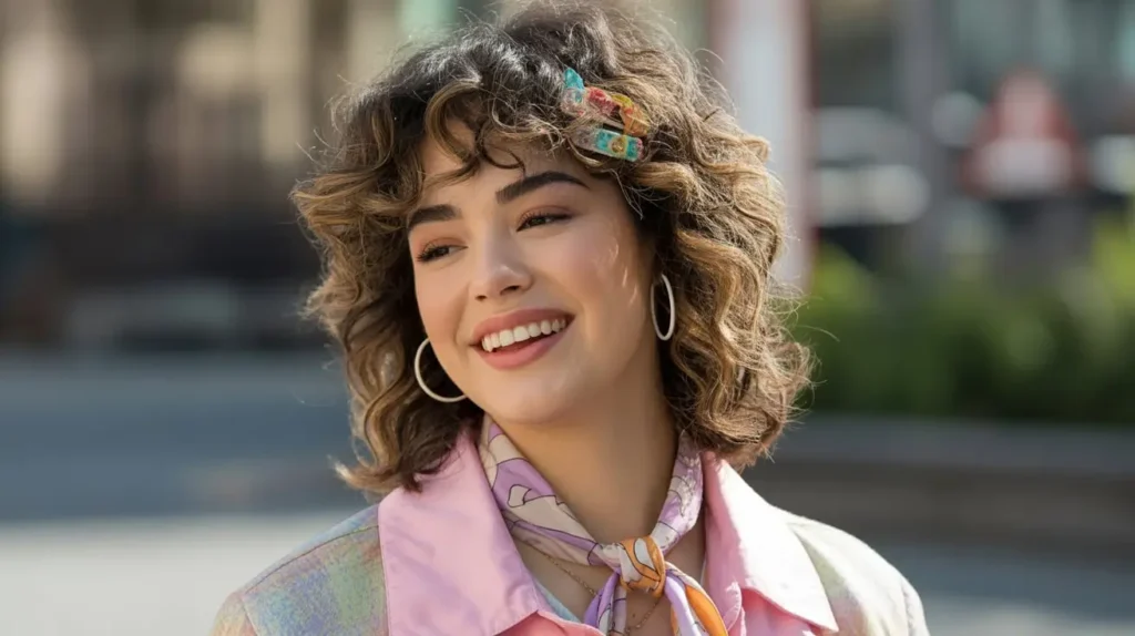 12. Messy Curly Hair with Accessories: Clips & Scarves