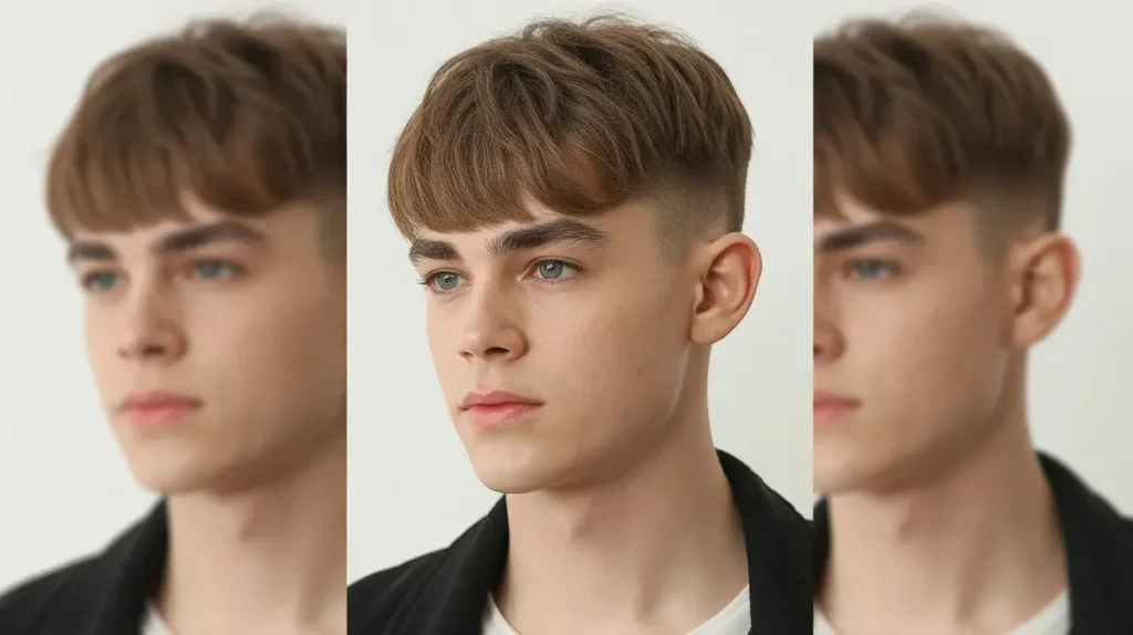 I see this look everywhere on social media, and honestly, it’s a vibe. It’s all about the forward-falling hair and the texture. It looks great on younger guys because it emphasizes a youthful, energetic face. It’s basically the 1960s filtered through a TikTok lens.