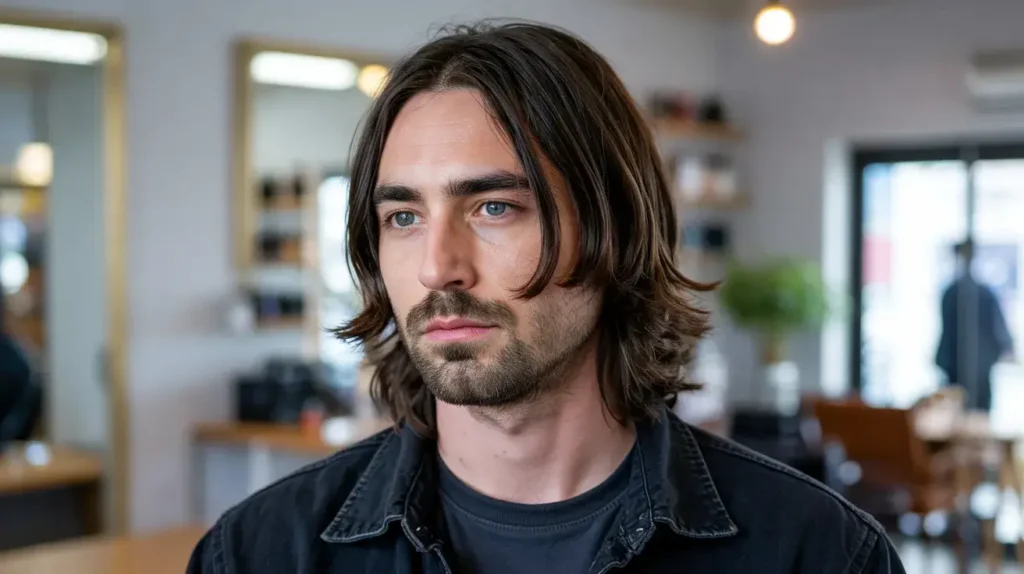On the opposite end of the spectrum, we have the Soft Flowing Long Mullet. This is the more “romantic” or “bohemian” version of the cut. Instead of harsh lines and buzzed sides, the transitions are soft and blended. The hair “flows” from the front to the back in a continuous wave.