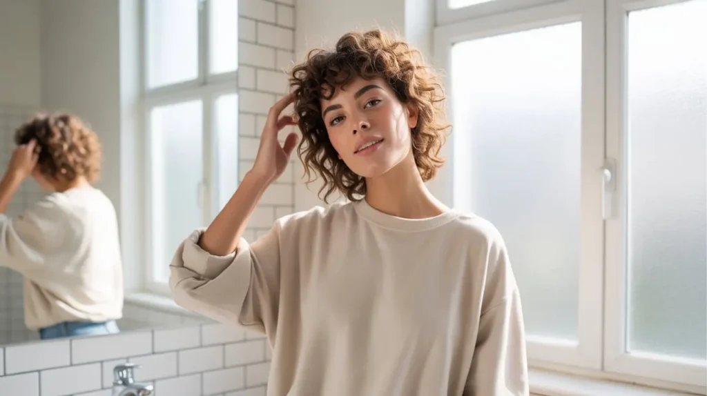 If your hair is longer, let the curls cascade down all sides. It’s effortless chic. The best part? It takes literally thirty seconds. You can dress it up with a headband or big earrings. It screams “I tried,” even when you barely did.