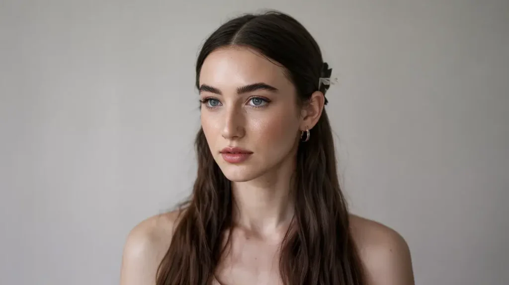This style is all about strategic piece placement. You gather the top section of your hair and secure it back, but here’s the key: leave out a few thin sections around your face. These face-framing pieces soften the entire look and photograph like a dream.