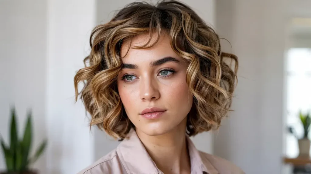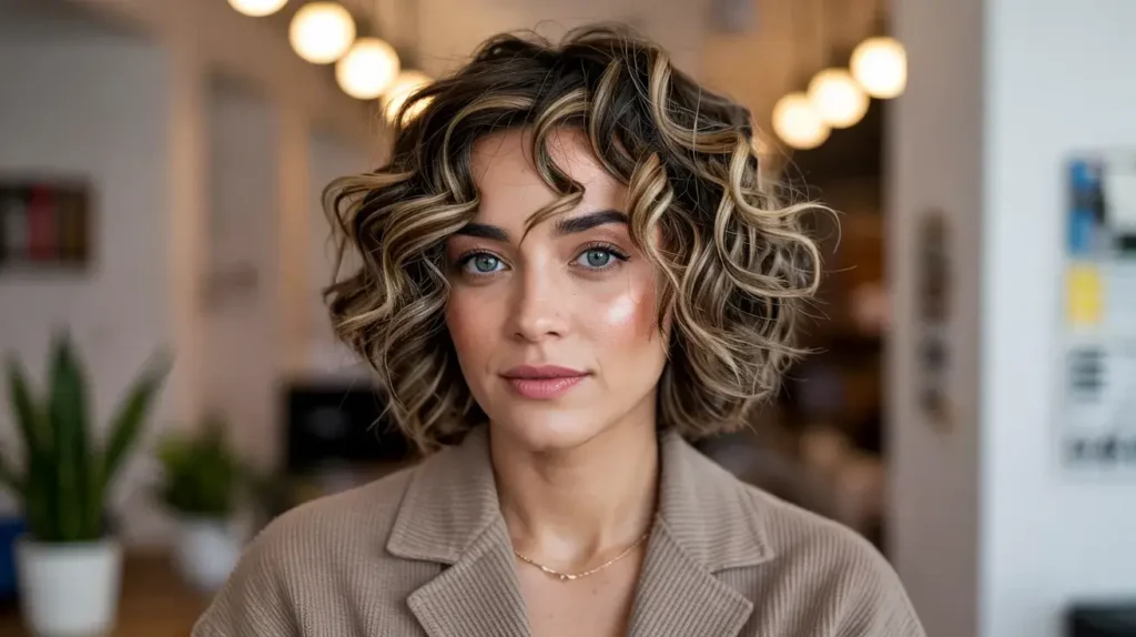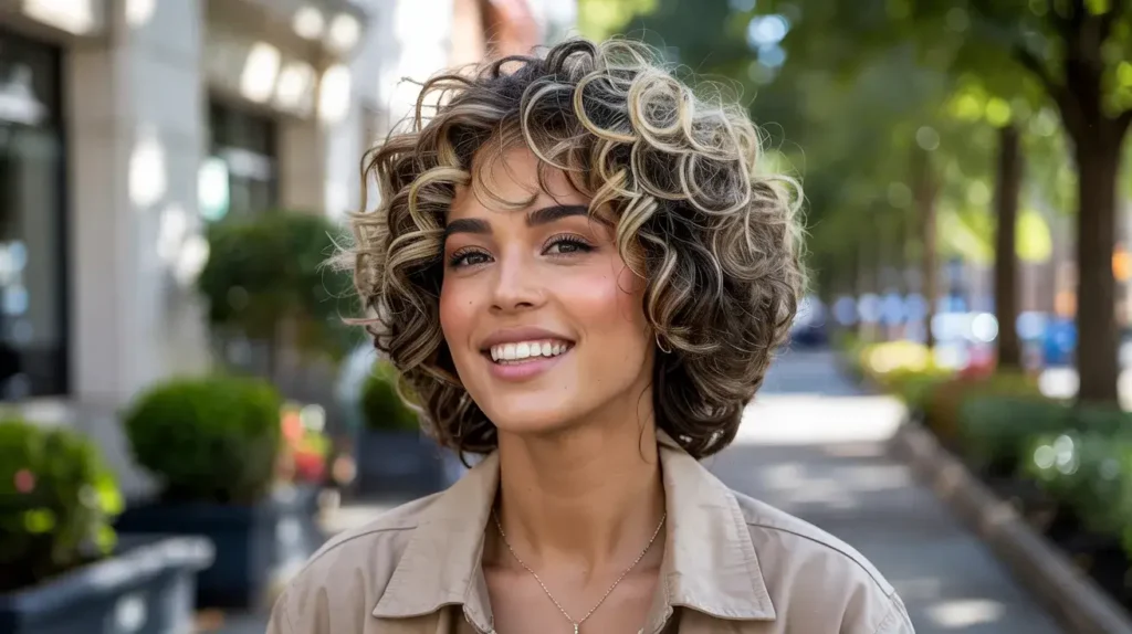 14. Short Curly Hairstyles with Highlights