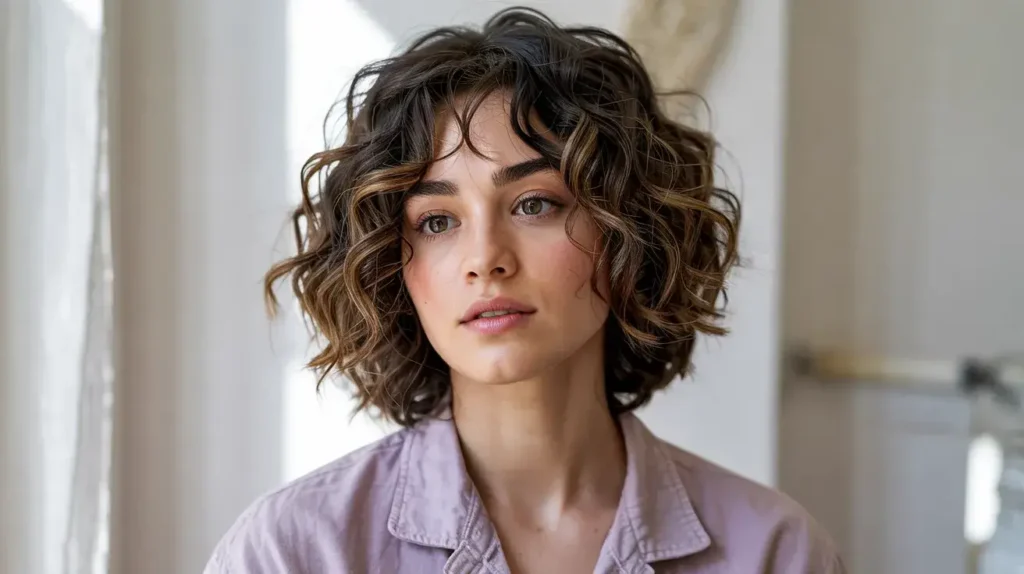 2. Short Curly Bob with Soft Layers