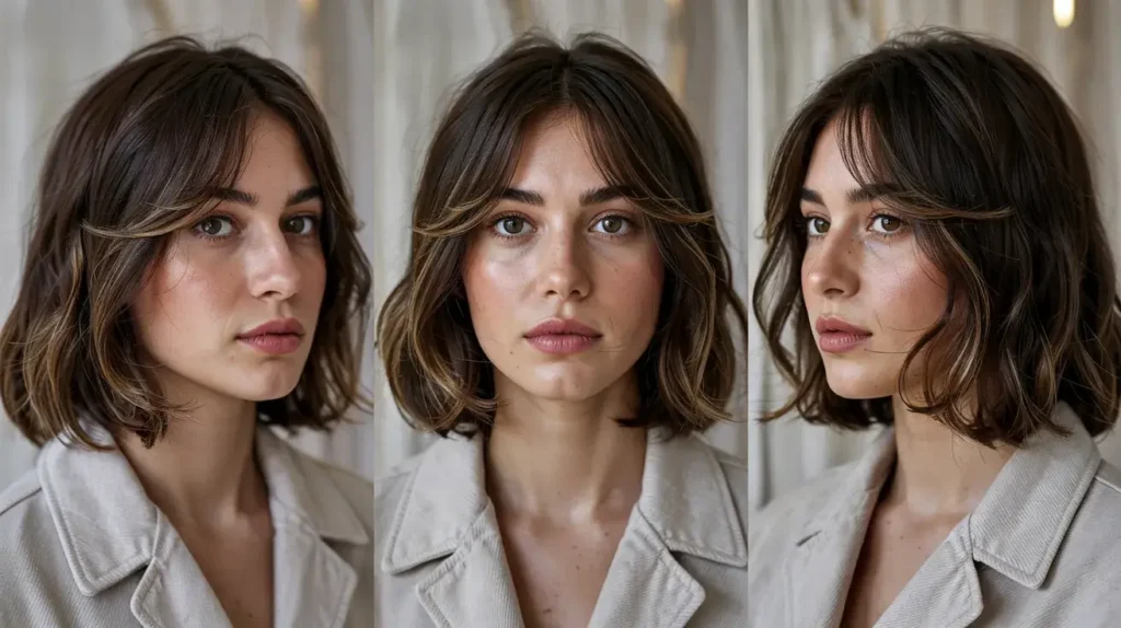 This style works because it embraces imperfection. Unlike a precision bob, the edges are soft. The wispy bangs prevent the look from feeling too heavy or helmet-like. I personally love this style because it allows your natural texture to shine through. You don’t need to straighten it to death. In fact, a little frizz actually adds to the charm.