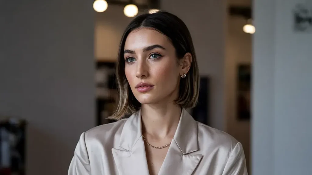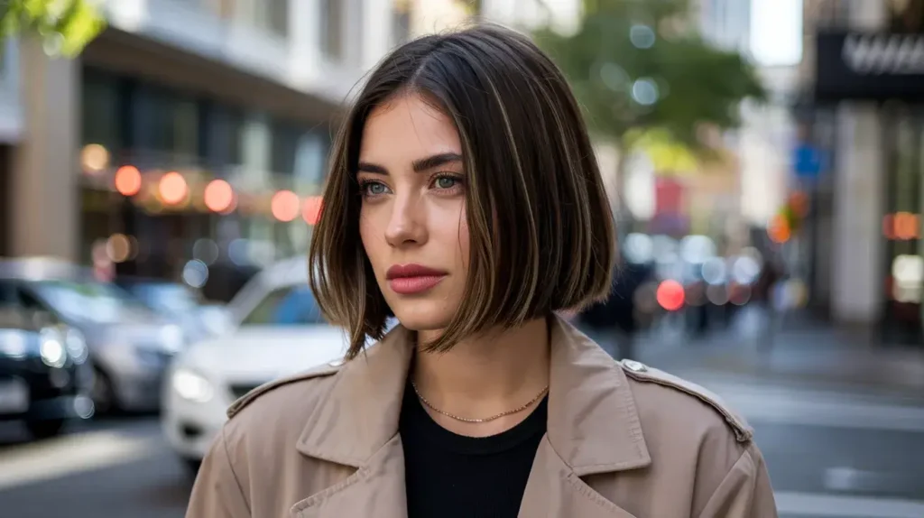There is something incredibly powerful about bone-straight short hair. It looks expensive. Think of the “glass hair” trend—hair so shiny and straight it reflects light like a mirror.