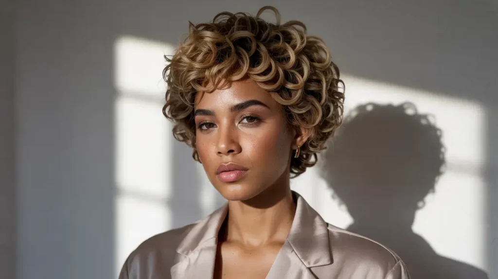Sometimes, it’s not the cut that needs changing—it’s the color. Adding highlights to short curls can completely transform your look. Highlights add “dimension,” which means they help individual curls stand out rather than blending into a dark mass.