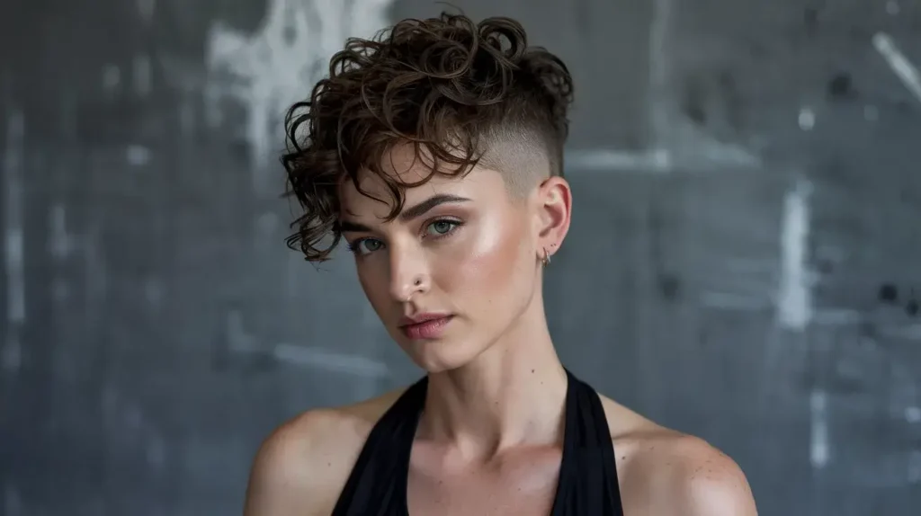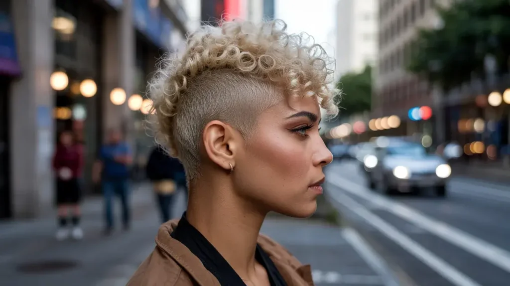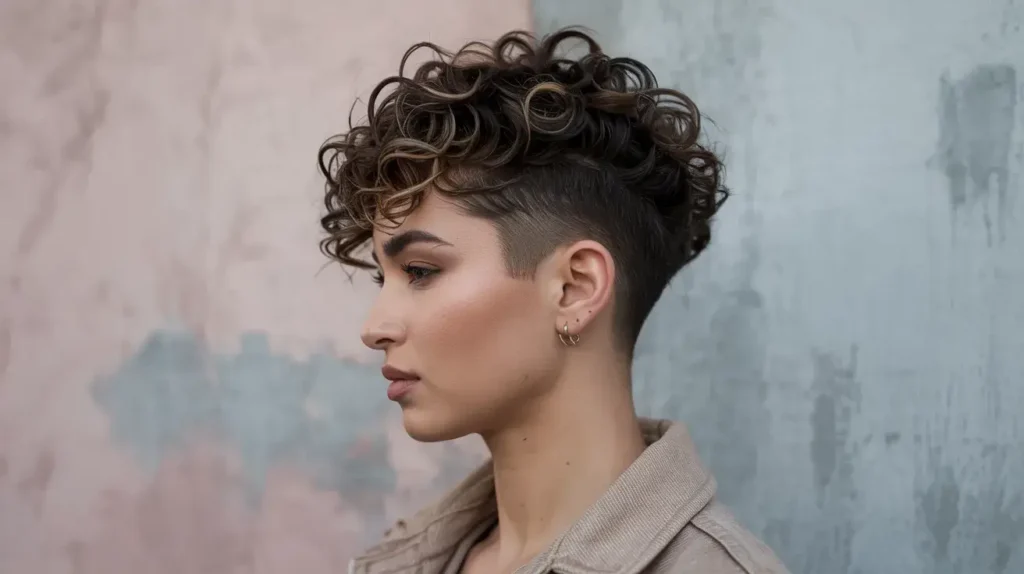 Are you a bit of a rebel? The micro curly frohawk is for the person who wants edge without the commitment of a full mohawk. The stylist keeps the sides very short—sometimes even skin-faded—while a strip of curls runs from the forehead to the nape.